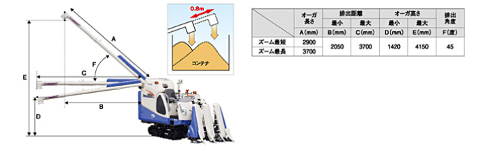 伸縮するズームオーガで、籾排出時の位置合わせがスムーズです。